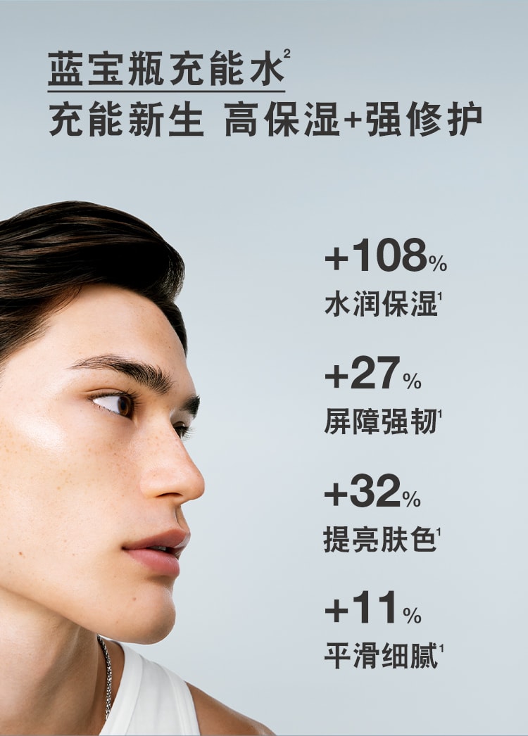 蓝宝瓶充能水可以祛除肌肤表面残留的杂质和油脂,使肌肤柔软。
