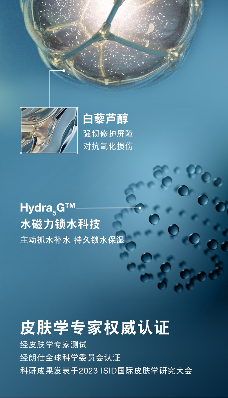 升级Hydra 5G水磁力锁水科技,帮助主动抓水补水,令肌肤持久水润舒爽。