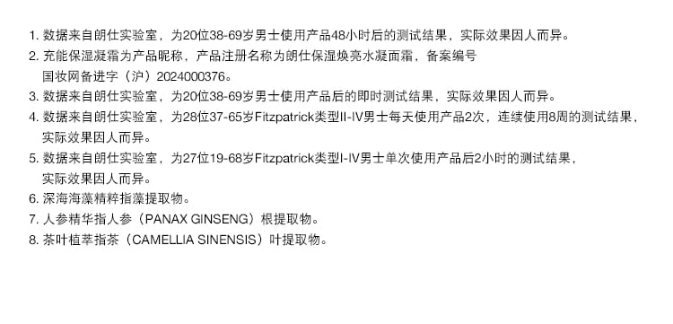 首页 / All Product 朗仕充能保湿凝霜ANTI-AGE 加载中 成分配方Hydra Burst「水盾」保湿科技,深透补水 层层滋润。.深海海藻精粹,对抗初老信号,淡褪细纹干纹。人参精华+茶叶植萃,提亮肤色,卓效抗氧。 朗仕重视环境保护朗仕保湿焕亮水凝面霜的包装由 42% 以上环保再生材料制成。